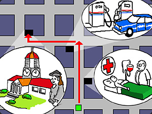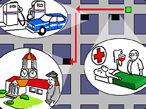 | Dov’è l’università? Prosegua su questa strada e passi l’ospedale che è a sinistra. Vada fino alla stazione di servizio e poi giri a sinistra. Prosegua per due isolati e là a destra c’è l’università. |
