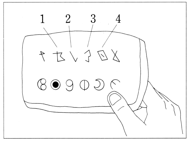 聴解スクリプト: 10番 これから2種類の文字について話をしています。 よく聞いて、後で質問に答えてください。 女:昔の王様の墓からある石が発見されました。 その石には古い文字が書かれていました。 昔この国では、2種類の文字が使われていたことが分かっています。 この石にも上下2段にその2種類の文字で王様の名前が書かれているんです。 上の段の文字は右から左に、下の段の文字は反対に左から右に読んでいくんですが、それぞれの文字は一つずつ順番に対応しています。 下の段の右から3番目の文字は上の段のどの文字と対応しますか。 下の段の右から3番目の文字です。