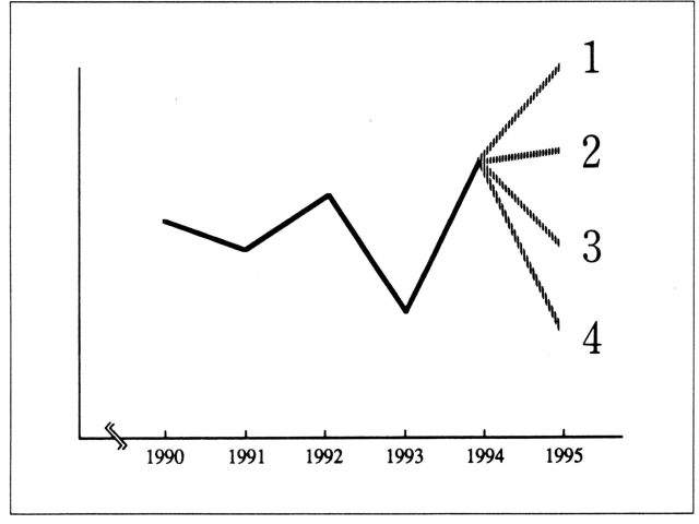 聴解スクリプト: 4番男の人がある会社の営業成績について話しています。 男の人は営業成績が来年どうなると言っていますか。 男:次は農器用機械メーカーの日本マシンなんですが。 ここ数年、業績の浮き沈みが激しいんですね。 時に昨年の1993年は円高の影響をまともに受けて、ここ数年で最悪の成績でした。 しかし、今年は海外での工場経営が波に乗って、業績を大幅に伸ばすことができ、この業界第一位の成績を収めました。 で、来年ですが、一般には、このまま、業績が伸びるだろうと予測されていますが、私はそうは思はないですね。 ライバルのほかの数社も海外進出を始めていますし、農業機器の需要そのものが落ち込んで来ていますので、業績が伸びるどころか、だいぶ悪化し、ここ5年間の平均値ぐらいになるんじゃないかと思います。 93年より悪くなることはないでしょうがね。 男の人は会社の営業成績が来年どうなると言っていますか。