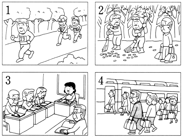 聴解スクリプト: 6番 老人クラブの人がクラブの活動について話しています。 クラブの活動にないものはどれですか。 ないものです。 男:明るくて豊かな毎日を送るために市内の老人クラブで葉、みなさんの入会をお待ちしています。 現在クラブで活動している方が932人います。 入会の動機は違っても,皆生き生きと活動しています。 老人クラブの活動はボランティア活動、生きがい活動、健康増進活動の三つです。 ボランティア活動では、道路や公園の掃除、生きがい活動では講師の先生を招いて経済や文学の勉強会、健康増進活動では、スポーツ大会を行っています。 老人クラブの活動にないものはどれですか。