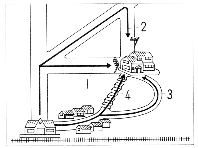 聴解スクリプト: 13番 問題:男の人が電話で旅館の女の人に道を聞いています。 男の人が行く道はどれですか? 女:はい、伊呂波旅館でございます。 男:今晩予約している山田ですが、いま駅なんです、そちらへの行き方を教えてほしいんですが。 女:駅から、右に入る道がございますから、それをまっすぐ来ていただいて階段の手前を右に曲がってまっすぐ来ていただければ、突き当たりに私どもの旅館がございます。 もしお客様が足に自信がおありでしたら、ちょっときゅうなんですが、階段を上っていただければ、階段の上でございます。 男:そうですか、車の場合は? 女:お車ですか、今の道は車が入れませんので、駅からまっすぐ伸びる道をいっていただいて、最初の角を直角に曲がっていただくと、つきあたりでございます。 男:わかりました、今から行きます。 女:お客様、今の道のはただいまの時間、歩行者専用ですので、すみません、同じところに右に斜めに入る道がございます。 そこを入っていただいて、最初の角を右に入ると突き当たりでございます。 男:そうですが、わかりました。 女:お待ちしております。 お子を付けてお越しください。 質問:男の人が行く道はどれですか?