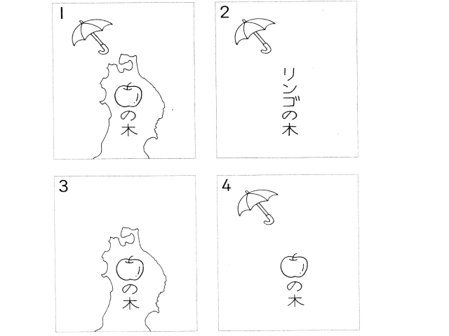 聴解スクリプト: 2番 問題:女の人と男の人が本のカバーのデザインについて話しています。 二人はどのデザインに決めましたか。 男:この小説のカバー、そのデザインにしましょうか? 女:“リンゴの木”って言うタイトルの一部を絵にしたアイデア、面白いわね。 男:やっぱりそうですよね。 あと、雨が重要な小道具になっていますから、傘もいれたいんですよ。 女:そうね、かわいいわね。 バックの地図は、要らないんじゃない。 男:そうでかね。 最近地方のカラーを出したものに人気があるからいいと思うんですけどねえ。 女:でも、うるさいわよ。 男:はい、わかりました。 質問:二人はどのデザインに決めましたか。