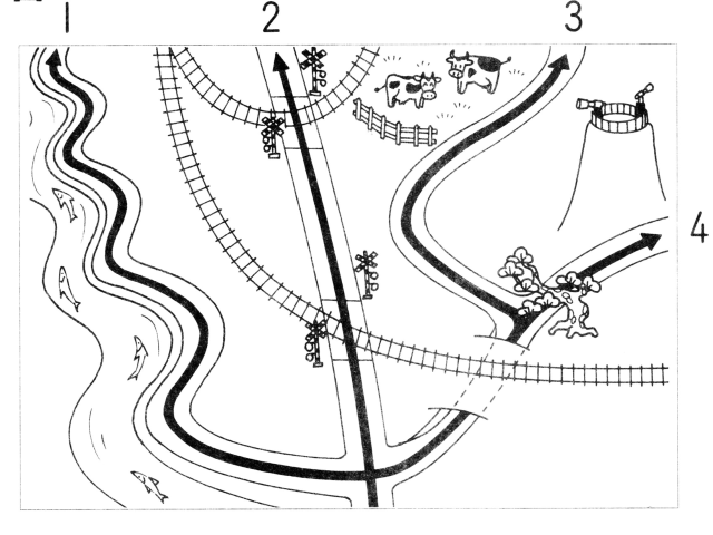 聴解スクリプト: 6番 問題:男の人と女の人が地図の前で話しています。 二人はどの道を行きますか。 女:どのルートで行く? この川沿いの道が景色が綺麗なんだ。 男:でも、カーブの多い道はいやだなあ。 運転に自信ないから。 女;じゃあ、このまっすぐの道は? 男:うーん、いいけど、踏切りが多いからかなり渋滞するかもしれない。 女:そう、それじゃ、ちょっと遠回りだけど、この道を行って線路の下をくぐっていく。 男:いいね、そして展望台に寄って行って…。 女:海が見えるのね。 男:あっ、展望台の先、通行止めだ。 女:じゃあ、この縁結びの松のあるところを曲がって牧場の方へ行ったら、絞りたての牛乳も飲めるし。 男:でも牧場霧多しって、天候掲示板にあったなあ。 前が見えないと恐いしね。 やっぱりこの道行くしかないかなあ。 女:ゆっくり慎重に走ればいいんじゃない。 男:うん、景色を楽しみながらゆっくり行こう。 質問:二人はどの道を行きますか。