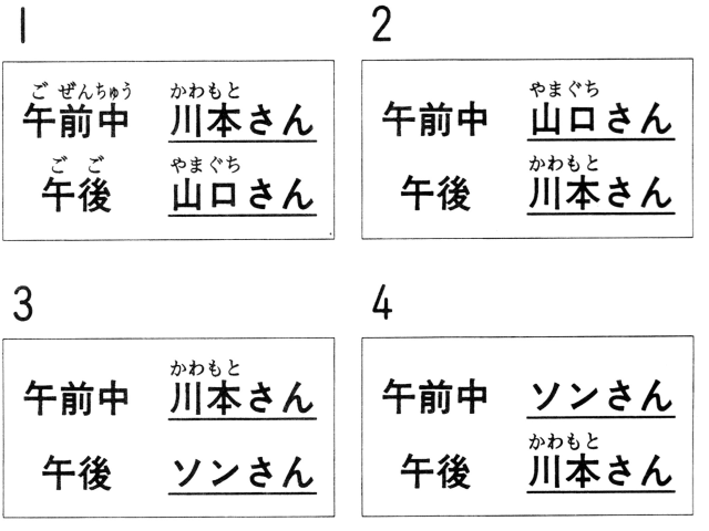 聴解スクリプト: 五番 問題 男の人が女の人と話しています。 誰が誰に電話しますか。 男:あっ、鈴木さん 鈴木:なに 男:さっき、先生がね。 。 鈴木:うん 男:明日のこと,たむさんに電話しといてくれって 鈴木:うん、わかった。 かけとくわ。 1 先生がたむさんに電話します 2 先生が女の人に電話します 3 女の人がたむさんに電話します 4 女の人が先生に電話します