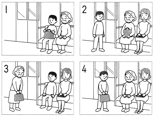 聴解スクリプト: 十番 お母さんとお父さんが話しています。お母さんは太郎君のことをどう思っていますか。 あのね、うちの祐二と同じ幼稚園の太郎君ってかわいいのよ。 うん、どうして? だって、昨日ね、幼稚園の先生に大きくなったら僕のお嫁さんになってくださいって言ったんだって。先生立派に居立って喜んでいらしたの。 うん。そういうちょっと面白い子って、何処にも居るよね。 でもそれがね、先生に、その時先生お婆さんよって言われて、一日中元気がなかったんだって。 ええ、そりゃ、可哀想にな。はははは。 お母さんは太郎君のことをどう思っていますか。 1、 可哀想だと思っている。 2、 元気がないと思っている。 3、 立派だと思っている。 4、 可愛いと思っている。