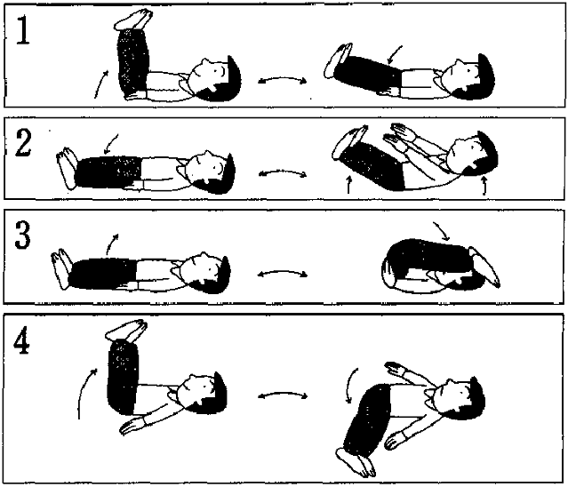 聴解スクリプト: 7番 先生が体操のやり方を説明しています。説明している体操はどれですか。 男:え、まず仰向けに寝て足を伸ばしたまま、まっすぐ上に上げます。ちょうど上半身と足が90度。直角になるようにします。そうしてゆっくり降ろします。そのときに完全に降ろしてしまわないで、床から10センチぐらいのところで止めるんです。そしてまた両足を伸ばしたまま、上に上げます。 先生が説明している体操はどれですか。