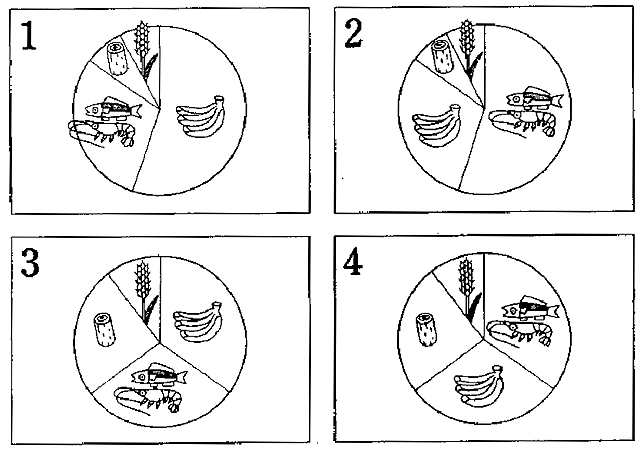 聴解スクリプト: 5番 二人の人が公園の案内板について相談しています。二人はどの案内板を使うことにしましたか。 女:あの、今度公園に立てる案内板のことなんですが。 男:ああ、水が飲める場所の。 女:ええ、いろいろ考えたんですが。 男:ああ、これなんか面白いね。コップなんか持っていて。 女:この水道のはどうでしょうか。 男:うん、すぐわかるかな。こちなんか手を洗うところって感じたな。やっぱり人が水を飲んでいるような絵がいいんじゃないか。 女:じゃ、これかこれですね。だけと課長、こっちだとジュースなんて見たいですね。 男:そうだな。じゃ、こっちにしよう。 二人はどの案内板を使うことにしましたか。
