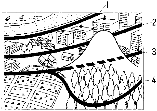 景色が変わっちゃまずいじゃない。 女:そうね。じゃあ、少し遠回りになるけど、あの山をぐるっと回って、それから出来るだけ田圃の中を通っても良かったんじゃない。 男:うん。それがね。あの山の森には貴重な動物が沢山いるから、無理なんだって。 女:そうね。お金より森の方が大切よね。 新幹線が通る予定なのは何処ですか。