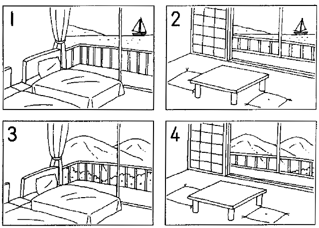(11) 男の人はどの部屋に泊まりますか。 男:すみません、部屋は空いていますか。海の見