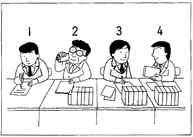(4) 田中さんはどの人ですか。 男:すみません、これ、田中さんに渡したいんですけど。 女:田中さんなら
