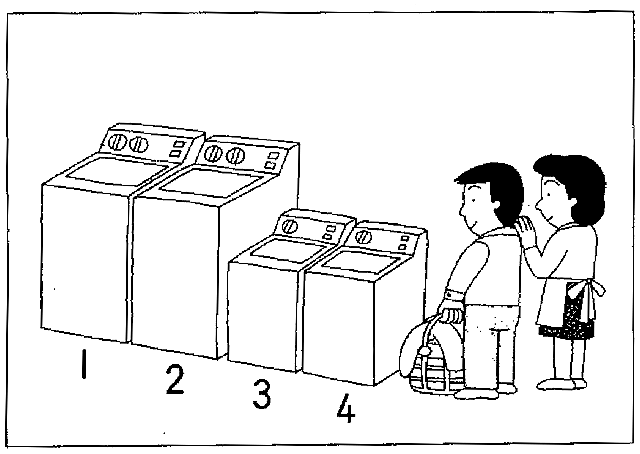 (7) 男の人はどの洗濯機を使いますか。 男:あのう、洗濯機使ってもいいですか。 女:ええ、どうぞ。一番
