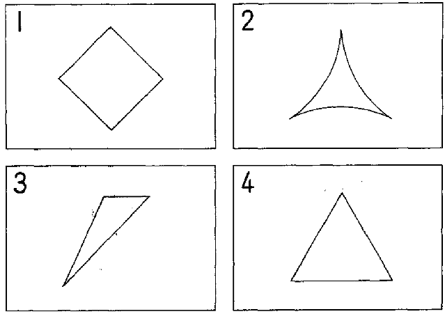 。同じ長さの線を3本使って書くのです。まっすぐな線ですよ。 女:はい。 どんな形を書きましたか。