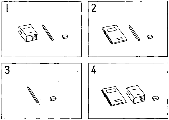 (1) 数学の先生の話を聞いてください。どんな形を書きますか。 男:じゃ、これから三角形を書いてください