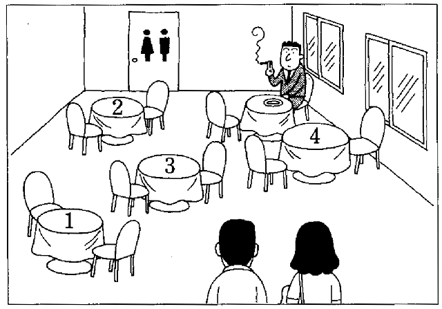 トイレの前? 男:じゃ、窓のそばにしようか。 女:ううん、タバコを吸っている人の隣はちょっと嫌だな。 男