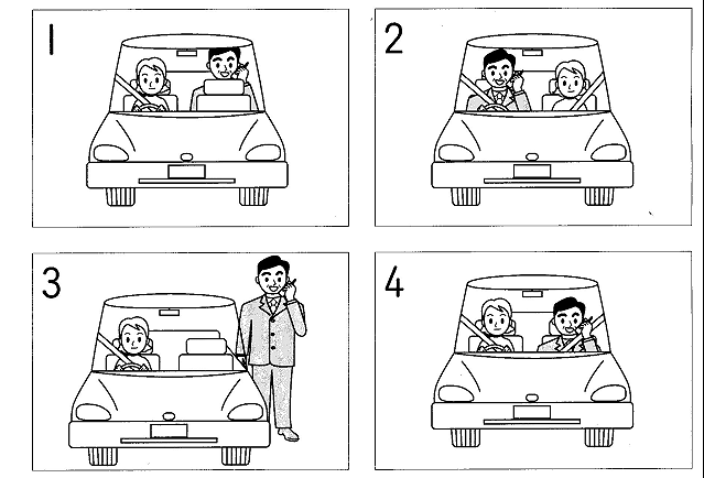 聴解スクリプト: 8ばん (男の人が電話で話しています) この男の人がどこにいますか? 電話が鳴った.... はい、山田です。あっ、今車の中なんです。娘に駅まで送ってもらうところです。うん、いつも運転してもらって、僕は後ろなんです。後ろの方がゆっくりできますから。それに、運転は娘のほうがうまいんですよ。 この男の人がどこにいますか?