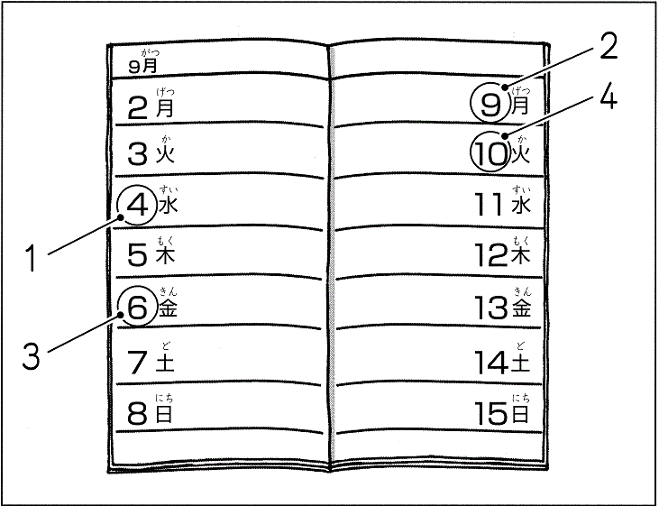 Menu JLPT / JLPT N5 Japanese language proficiency test 016 - Task 1. Listening comprehension Written answers/pictures (Valid answers are at the bottom of this page)